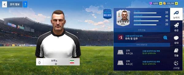 선수와 마찬가지로 코치도 영입할 수 있다. 코치 또한 선수와 동일하게 중복 획득, 조각으로 승급하고 여러 능력치를 상승시켜 팀 파워를 막대하게 올릴 수 있다. 코치뿐만 아니라 매니저도 스테이지를 완료할 때마다 성장시켜 능력치를 대폭 상승시킬 수 있다.
