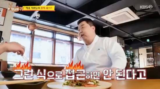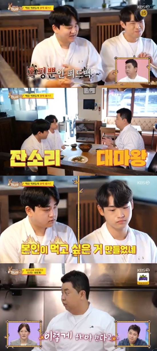 정호영은 김태환이 만든 마라 메밀국수에 대해서도 "이것도 마제랑 비슷하다"면서 직원들을 향해 "그런 식으로 접근하면 안 된다. 자기가 먹고 싶은 거 만들었네"라고 말했다.