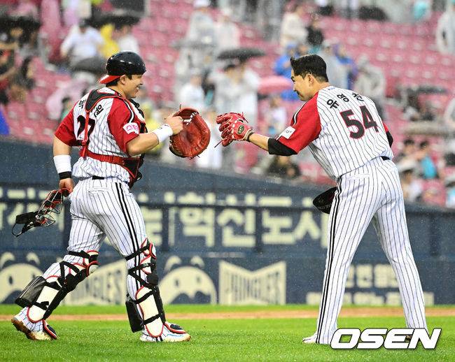 경기를 마치고 LG 박동원, 유영찬이 승리를 기뻐하고 있다. 2024.05.26 / jpnews@osen.co.kr