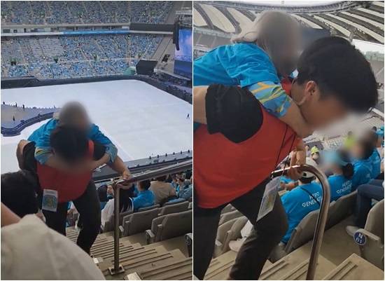여기에 진행 요원이 거동이 불편한 관객을 직접 업고 객석으로 안내하는 모습이 포착돼 훈훈함을 더했다.
