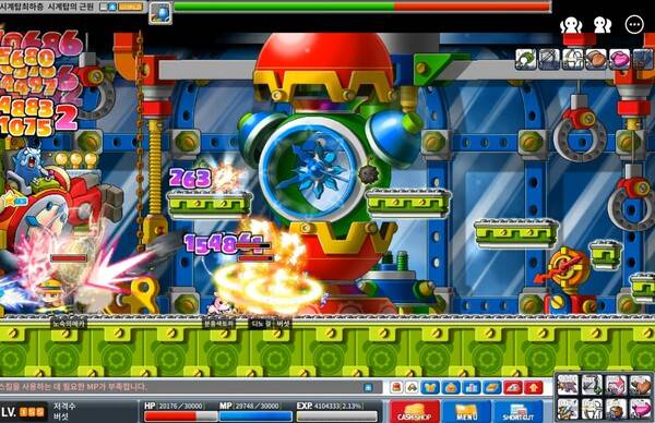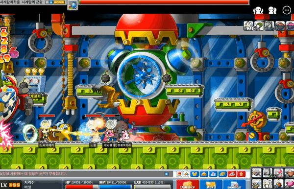 영상에서는 범위 공격을 회피하며 맹공격을 펼치는 운영자들의 모습을 볼 수 있었다. 이때 폭탄이 많아지기 전에 담당자가 직접 부딪혀 처리하는 모습이 추억을 자극했다. 첫 번째 HP 칸을 모두 소모시키면 본체가 분리된다. 움직임이 재빠르기 때문에 근접 공격 직업보다는 원거리 공격 직업이 상대하기가 더 수월하다. 테스트 버전인 만큼 아이템은 드롭되지 않았다.