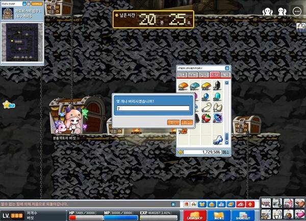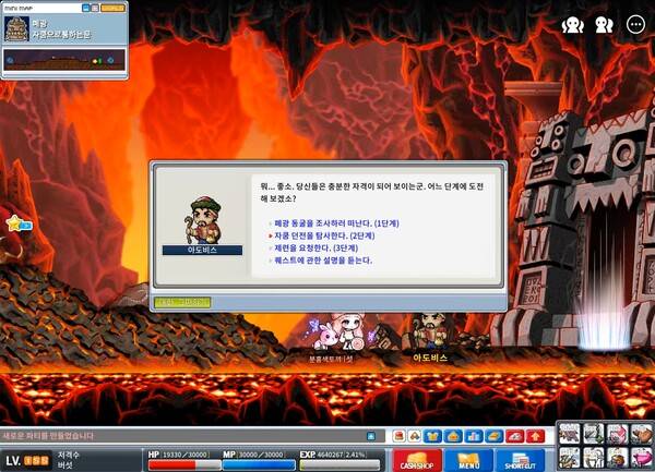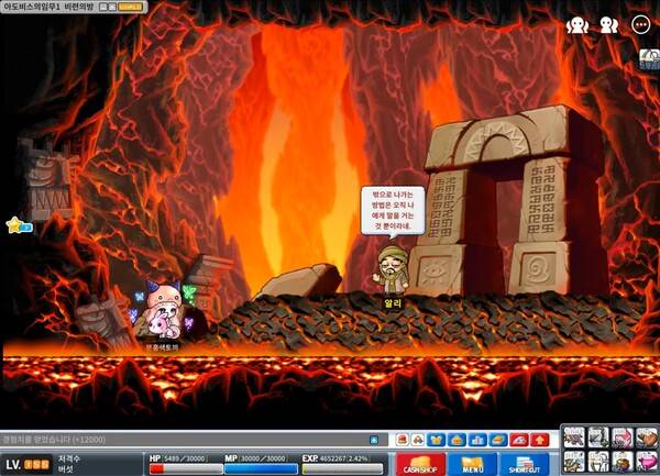 영상에서는 범위 공격을 회피하며 맹공격을 펼치는 운영자들의 모습을 볼 수 있었다. 이때 폭탄이 많아지기 전에 담당자가 직접 부딪혀 처리하는 모습이 추억을 자극했다. 첫 번째 HP 칸을 모두 소모시키면 본체가 분리된다. 움직임이 재빠르기 때문에 근접 공격 직업보다는 원거리 공격 직업이 상대하기가 더 수월하다. 테스트 버전인 만큼 아이템은 드롭되지 않았다.