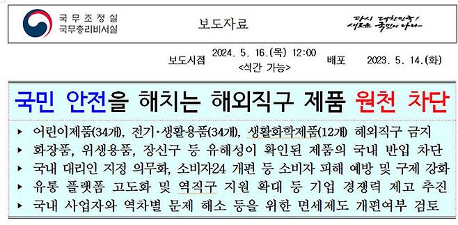 [다음 달부터 80개 제품에 대해 해외직구 위해 제품 차단