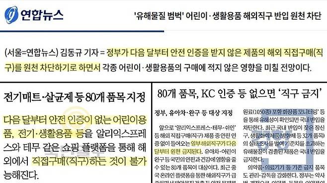 모호하게 작성된 보도자료와 브리핑 과정에서의 충실하지 못한 설명, 부정확한 기사(정부 입장에서는)에 대해 즉각 대응하지 않는 태도 등이 결합돼 KC 인증이 없는 80개 품목이 다음 달부터 당장 해외직구가 차단되는 것으로 알려졌고, 국민적 반발을 불렀습니다.