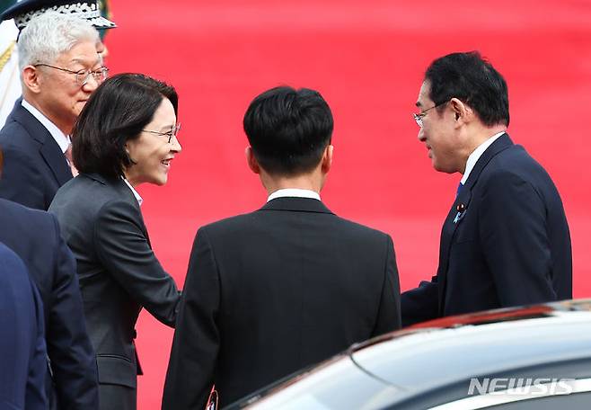 인사 나누는 기시다 후미오 일본 총리-강인선 외교부 2차관