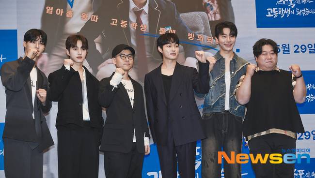 5월 27일 오후 서울 마포구 상암동 스탠포드호텔에서 웨이브(Wavve), 티빙, 왓챠에서 첫 공개되는 '조폭인 내가 고등학생이 되었습니다'(극본 정다희/연출 이성택/원작 호롤(영상출판미디어)/제작 ㈜넘버쓰리픽쳐스/이하 조폭고) 제작발표회가 진행됐다. 이날 이성택 감독, 윤찬영, 봉재현, 원태민, 고동옥, 주윤찬이 참석했다.