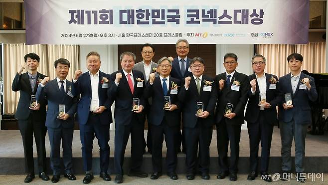 27일 서울 중구 프레스센터에서 열린 머니투데이 주최 '제11회 대한민국 코넥스대상 시상식'에서 시상자와 수상자들이 기념촬영을 하고 있다.