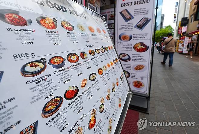 사진은 이날 서울 시내 한 음식점 메뉴와 가격.