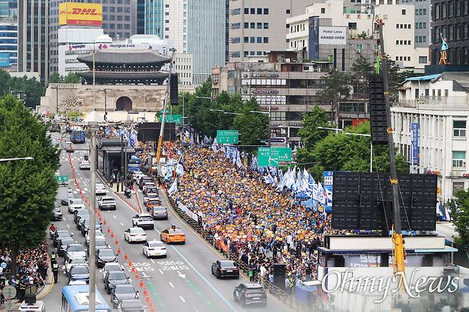 | ▲ 25일 서울역 집회 장면 야당-시민사회 공동 ‘채 상병 특검법 거부 규탄 및 통과 촉구 범국민대회’가 25일 오후 서울역과 숭례문 사이에서 더불어민주당,정의당, 새로운미래, 조국혁신당, 진보당, 기본소득당, 사회민주당, 거부권을 거부하는 전국비상행동 주관으로 열렸다. |