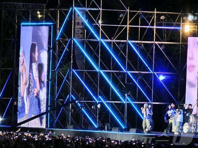 (광주=뉴스1) 서충섭 기자 = 27일 오후 9시30분쯤 조선대학교 축제 무대에 등장한 뉴진스가 공연을 하고 있다.이날 축제장에는 4만5000여명의 인파가 몰렸다. 2024.5.27./뉴스1
