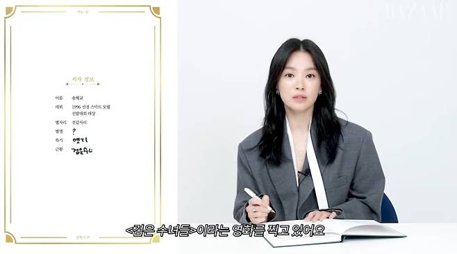 지난 27일 유튜브 채널 'Harper's BAZAAR Korea'에는 "압도적인 비주얼에, 왜인지 모르겠지만 은근히 웃긴 솔직 담백한 모습까지. 이러면 송혜교에게 안 반할 수가 없잖아요!"라는 제목의 영상이 올라왔다. 송혜교의 '잡학사전'이라는 콘텐츠였다.