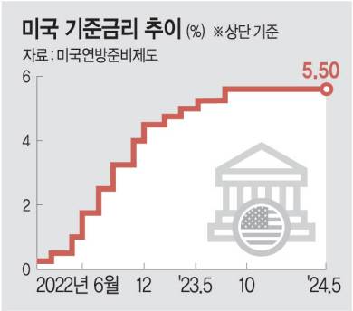 현재 미국의 기준금리는 5.25∼5.50%다. 지난해 9월 이후 FOMC에서 6회 연속 동결된 것으로 이 금리는 2001년 이후 가장 높은 수준이다. 하지만 당분간 이 같은 고금리 상태가 계속될 것으로 전망된다. 지난 22일(현지시간) 공개된 5월 FOMC 의사록에서 위원들은 1분기 실망스러운 물가 지표와 미 경제의 강한 모멘텀을 가리키는 지표를 지적하며 “인플레이션이 2%로 지속적으로 향한다는 더 큰 확신을 얻기까지의 시간이 이전에 예상했던 것보다 더 오래 걸릴 수 있다”고 평가했다. 나아가 다양한(various) 참석 위원들은 이 같은 상황이 계속되면 금리를 인상해야 한다고 주장했다. 실제 지난해까지 상승세가 주춤했던 근원 PCE 상승률이 올해 1월 0.5%로 깜짝 반등한 데 이어 2∼3월 들어서도 2개월 연속 0.3% 상승률을 나타내며 고물가 고착화 우려를 키우고 있다. 연간 물가 상승률 2% 달성을 위해선 전월 대비 상승률이 평균적으로 0.2%를 넘지 않아야 하는데 이를 웃돌고 있는 상황이다.