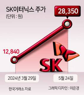 SK이터닉스는 SK디앤디에서 분할돼 올해 3월 29일 코스피에 재상장됐다. 상장 첫날 1만2000원대였던 주가는 현재 3만원대 수준까지 높아졌다. 신재생에너지와 에너지저장장치(ESS) 사업의 성장 기대감이 주가에 반영되고 있다.
