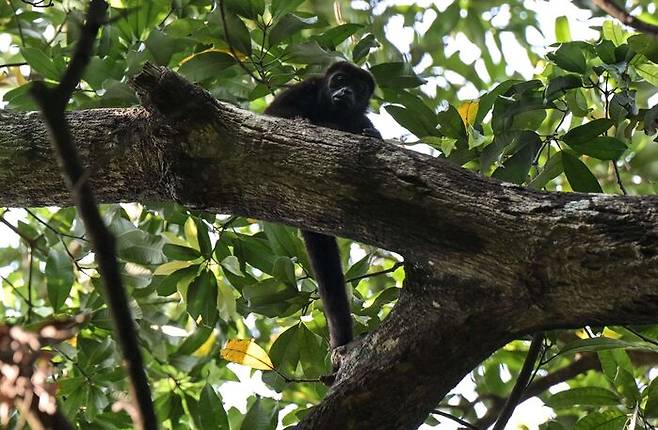 '유카탄검은짖는원숭이', 또는 '과테말라검은짖는원숭이'라고 불리는 원숭이입니다. 멕시코 남부 타바스코주에서 포착된 모습입니다.