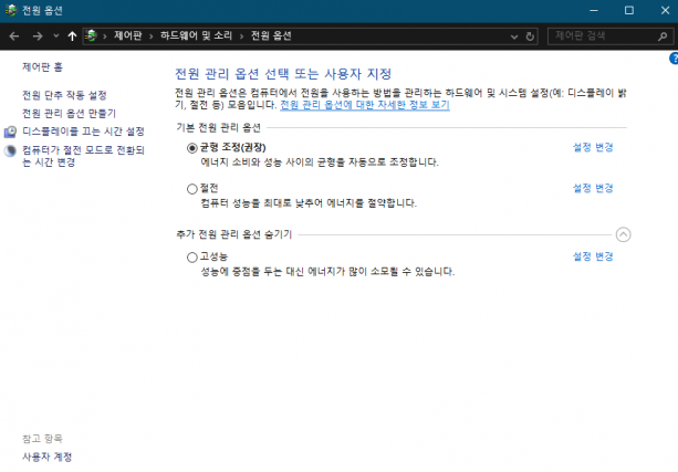 윈도우 10부터 작업표시줄에 위치한 돋보기 모양 아이콘을 누르면 기능이나 파일을 검색할 수 있는데요. 이곳에 ‘전원 및 절전 설정’을 입력하세요. 그러면 창이 하나 뜰 텐데요. 이곳에서 ‘추가 전원 설정’을 누르세요. 이곳에서 균형 조정을 선택하면 자원 소모가 조금이라도 줄어듭니다. 윈도우 11이라면 검색 기능에 ‘전원 관리 옵션 선택’을 검색하면 바로 설정 메뉴로 진입할 수 있어요.