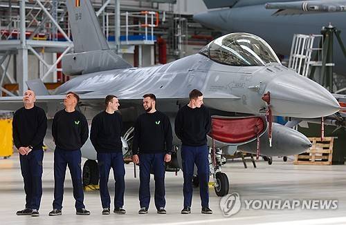 epa11375169 Ukrainian technicians await the arrival of Ukraine's President Volodymyr Zelensky (not pictured) to attend a meeting with pilots, Belgian instructors and maintenance team of F-16 fighter aircraft at the Melsbroek military airport, in Brussels, Belgium, 28 May 2024. Zelensky visits Belgium to ink the latest in a string of security accords with Western allies. The two leaders discussed, among other things, Belgium's military support to Ukraine and the signing of a bilateral security agreement, including the supply of F-16 fighter jets as part of the security agreement. EPA/OLIVIER HOSLET