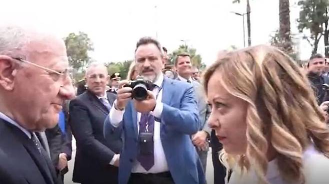 두 사람이 만난 것은 지난 2월 16일 데 루카 주지사가 하원의사당 밖에서 기자들과 대화를 나누던 중 멜로니 총리를 "암캐(stronza·영어로는 bitch)"라고 부른 이후 처음입니다.