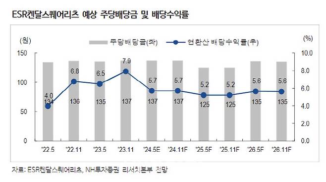 NH투자증권은 29일 ESR켄달스퀘어리츠(365550)가 2025년 이후 물류센터 수급 개선이 기대된다며 목표주가를 기존 5200원에서 6500원으로 25% 상향했다.