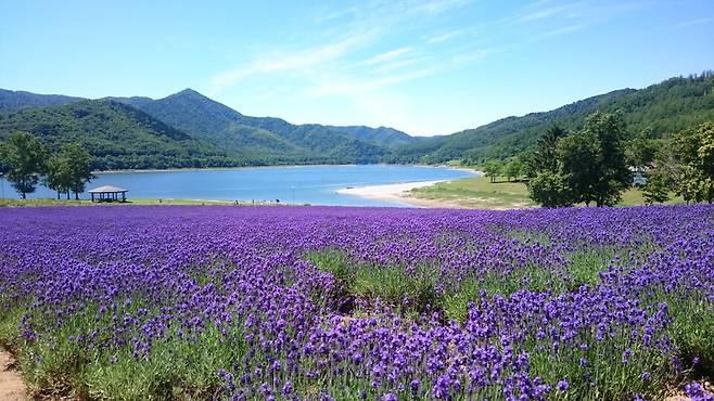 라벤더 밭이 눈부신 '가나야마 호수'