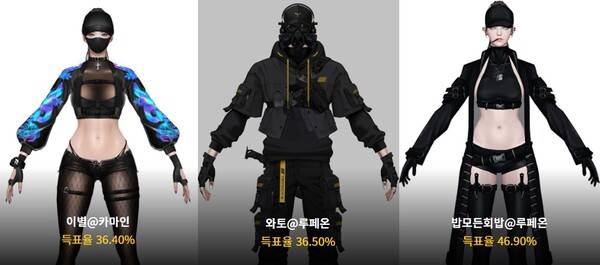 헌터(남)은 테크웨어 아바타가 강세를 보이는 가운데, 와토 유저의 블랙맘바가 1위를 달성했다. 2위인 유령 중대와는 18%, 약 두 배 정도 인기가 높았다.