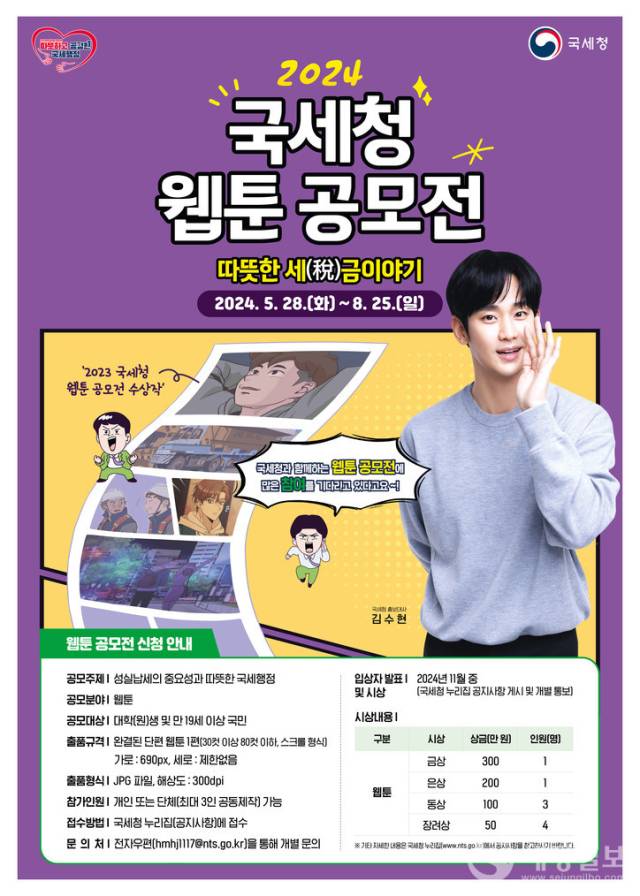 국세청이 5월 28일부터 8월 25일까지 '2024 국세청 웹툰 공모전'을 개최한다.