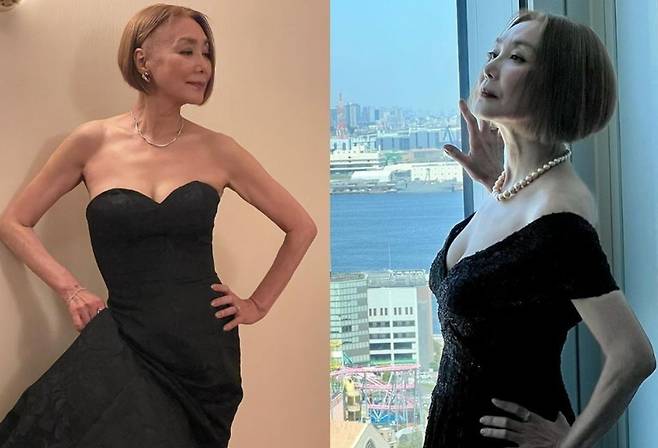 60대 몸매 실화?...어깨 드러난 드레스 입고 당당 포즈 취한 女배우 [룩@재팬]