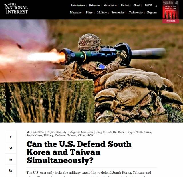 미국의 대표적인 싱크탱크인 랜드연구소의 브루스 베넷 국방 분야 선임연구원은 외교안보 전문지 내셔널인터레스트에 지난 24일 기고한 글에서 이렇게 지적했다. 베넷 선임연구원의 기고문 제목은 ‘미국이 한국과 대만을 동시에 방어할 수 있는가?’이다. 미국만 감당하기 힘드니 한국의 예비군 전력을 강화하라는 주장이 담겼다.