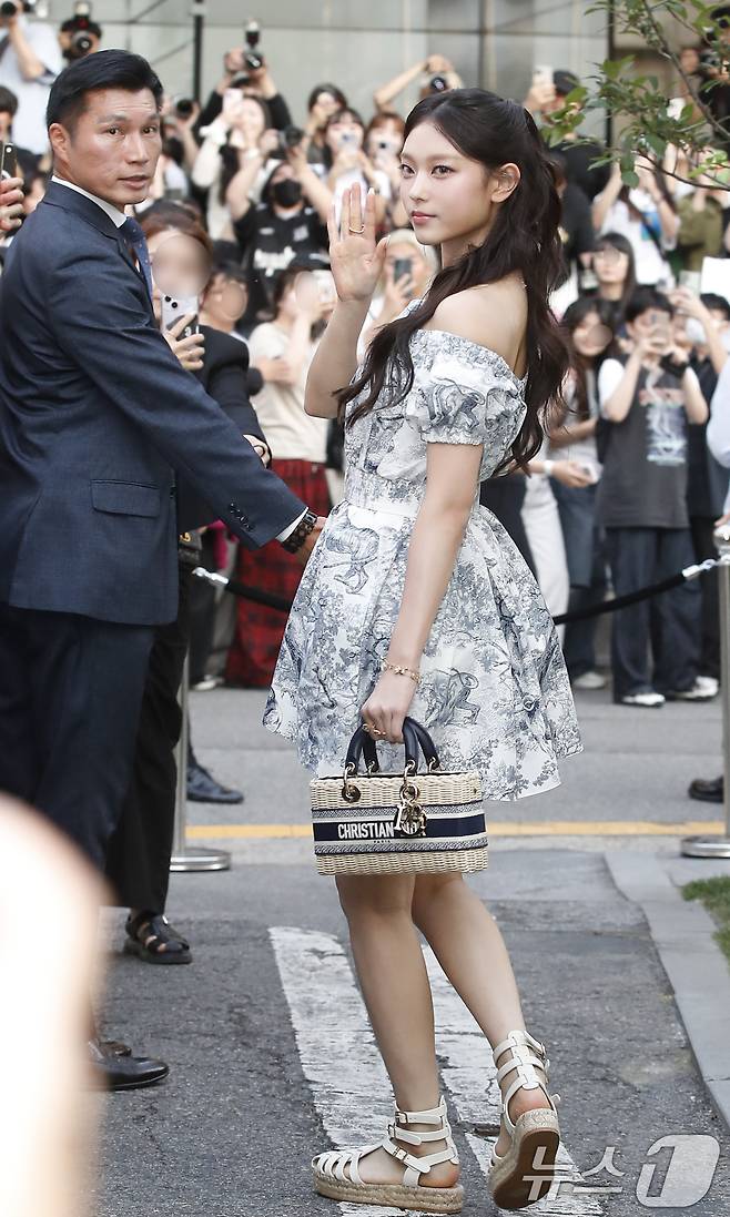 (서울=뉴스1) 권현진 기자 = 뉴진스 해린이 29일 서울 성동구 디올에서 열린 포토행사에서 인사를 하고 있다. 2024.5.29/뉴스1