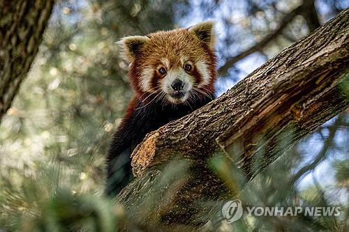 epa11377576 A red panda named Bernie in its enclosure at the Wroclaw Zoo, in Wroclaw, Poland, 29 May 2024. The male was born almost a year ago at Fota Wildlife Park near Cork, Ireland and arrived in Wroclaw by air. He weighs over five kilograms and, as zoo employees emphasize, is large for his age. EPA/MACIEJ KULCZYNSKI POLAND OUT