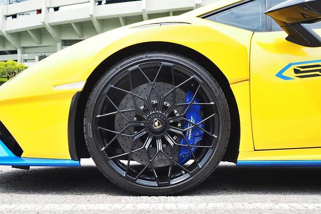 후륜구동 미드십 기반으로 앞쪽이 가벼울 수 밖에 없는데 막상 주행을 해보면 사륜구동 차와 같은 안정적인 모습을 드러낸다. 밸런스가 상당하고 에어로 다이내믹 효과가 높다는 것을 단번에 알아차린다. 실제로 우라칸 퍼포만테와 비교해 전체 공기흐름과 효율은 37% 개선을 이뤄냈고 다운포스는 획기적인 수준인 53% 증가했다. 고속 커브는 물론 한계로 몰아붙여도 바닥에 바짝 붙어 포물선을 그려내는 이유다.