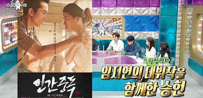 이날 송승헌은 과거 영화 '인간중독'에서 임지연과의 베드신을 처음으로 언급했다. 송승헌은 "임지연 씨가 잘되면서 '인간중독'이 의도치 않게 역주행 중이다"라며 고마워했다.