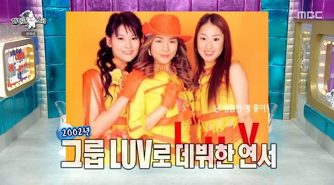 오연서는 2세대 걸그룹 LUV 출신이라며 전혜빈과 3인조로 8개월가량 활동했다고 전했다. 오연서는 지난 2002년 걸그룹 LUV로 데뷔, 1집 앨범 'Story Orange Girl'로 활동한 바 있다. 이어 "월드컵 시즌이어서 잘 안됐나 싶다. 당시 슈가, 밀크 등이 라이벌이었다"라고 말했다.