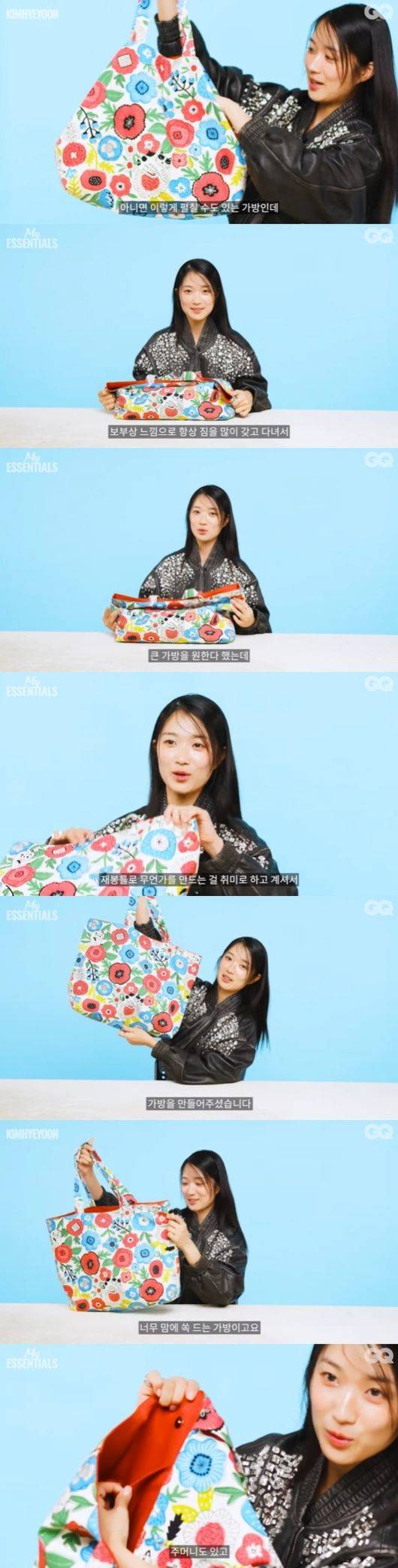 이어 "보부상 느낌으로 짐을 많이 갖고 다녀서 큰 가방을 원한다고 했는데, 엄마가 요즘 재봉틀로 뭔가를 만드는 취미가 있으셔서 만들어주셨다"며 "가방 안에 보면 똑딱이도 있고, 주머니도 있고, 튼튼하고 좋은 가방이다. 너무 맘에 쏙 드는 가방"이라고 자랑했다.