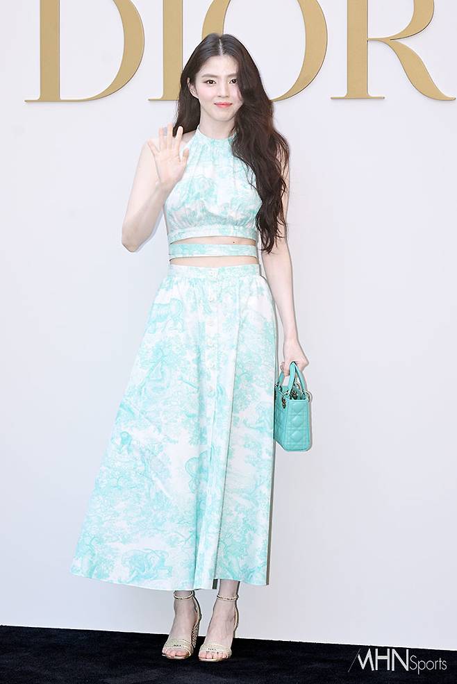이날 한소희는 등과 허리라인이 드러난 화려한 패턴의 드레스를 입고 등장했다. 비비드한 민트 컬러의 드레스는 한소희의 백옥 같은 피부와 어우러지며 상큼한 미모를 배가 시켰다.
