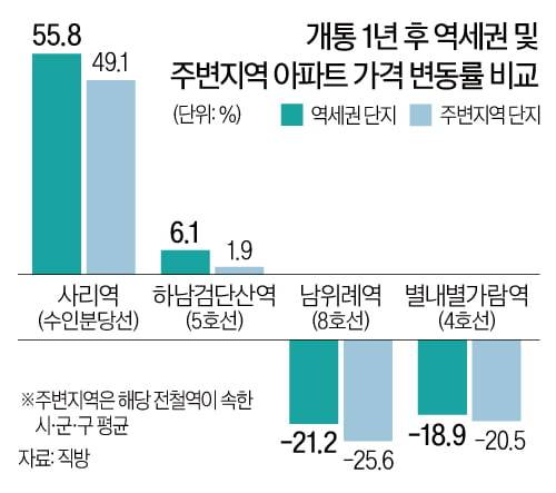 역 개통 후 1년간 가격 55% ↑