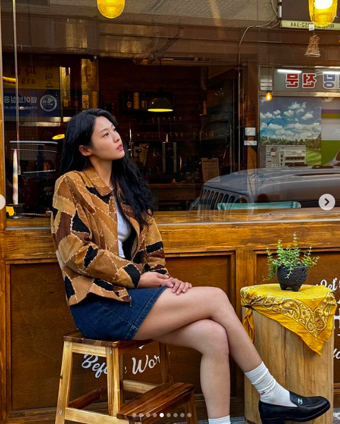 전체적으로 갈색 톤을 유지하고 있는 카페와 어우러진 설현은 다가오는 여름에도 가을 분위기를 물씬 풍겼다.