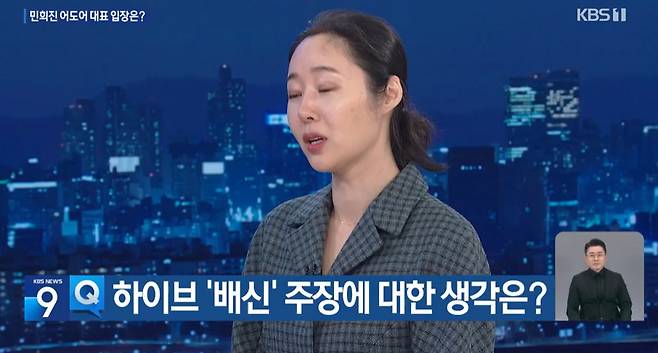 더불어 앵커는 "하이브 측은 민 대표가 뉴진스를 데리고 나가려고 했다고 주장한다. 사실이냐"는 질문을 건네기도.