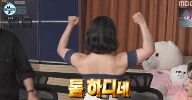 이에 박나래는 즉석에서 우람한 광배근을 자랑하며 "제가 광배를 운동을 많이 해서..."라고 뿌듯해했다.