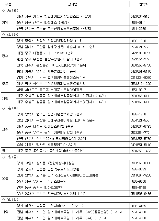 다음은 내주 분양 일정.