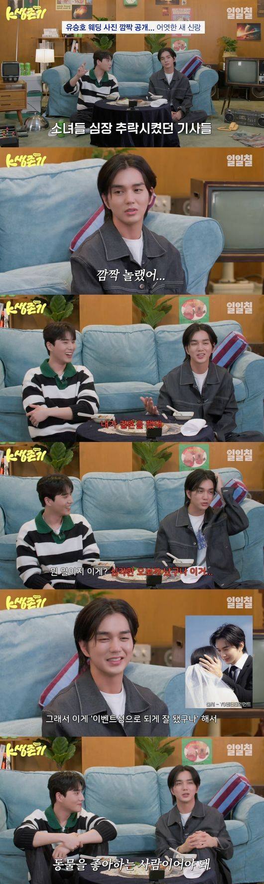 영케이는 당시 기사 제목들을 언급했고, 이와 관련해 유승호는 "깜짝 놀랐다. 아침에 확인을 하는데 내가 결혼을 했다고 하더라. '오늘 뜬 유승호 결혼사진' 이런 게 있더라. 난 결혼을 한 적이 없다. 뭔 일이지 했다"고 말해 웃음을 자아냈다.