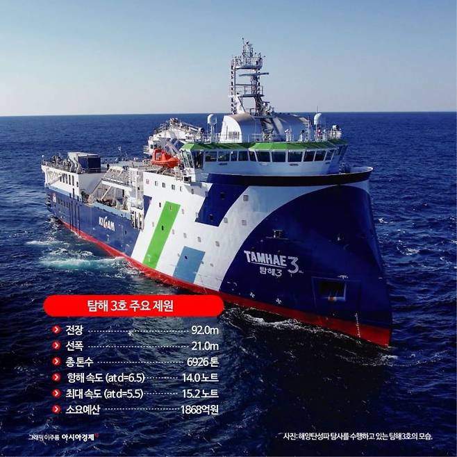 지난 23일 부산 앞바다에서 HJ중공업으로 항해 중이던 최첨단 3D/4D 물리탐사연구선 탐해3호에서 기자들에게 탐해3호에 대해 설명하는 김병엽 한국지질자원연구원 해저지질에너지연구본부장의 말에는 강한 자신감이 느껴졌다. 기회만 주어진다면 한반도 인근 해역은 물론 전 세계 바다를 힘차게 누빌 최첨단 해저 탐사연구선 탐해3호를 통해 우리나라도 산유국의 가능성을 확인할 수 있다는 의미였다.