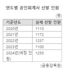 이런 마당에 올해 공인회계사 선발인원은 역대 가장 많은 1250명으로 결정됐다. 전년(1100명)보다 150명이 늘어난 수치다. 결국 올해 빅4 회계법인이 흡수 가능한 신입회계사는 700명 후반대로, 전체의 60% 안팎으로 추정된다. 나머지는 중견·중소회계법인이 품을 것으로 보인다.