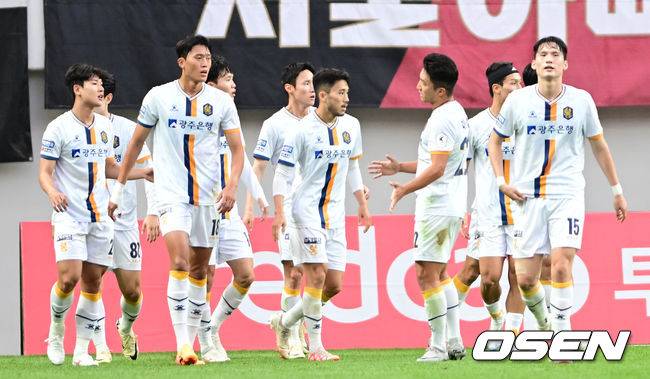 전반 광주 이건희가 골을 넣은 뒤 동료 선수들과 기뻐하고 있다. 2024.06.02 / ksl0919@osen.co.kr