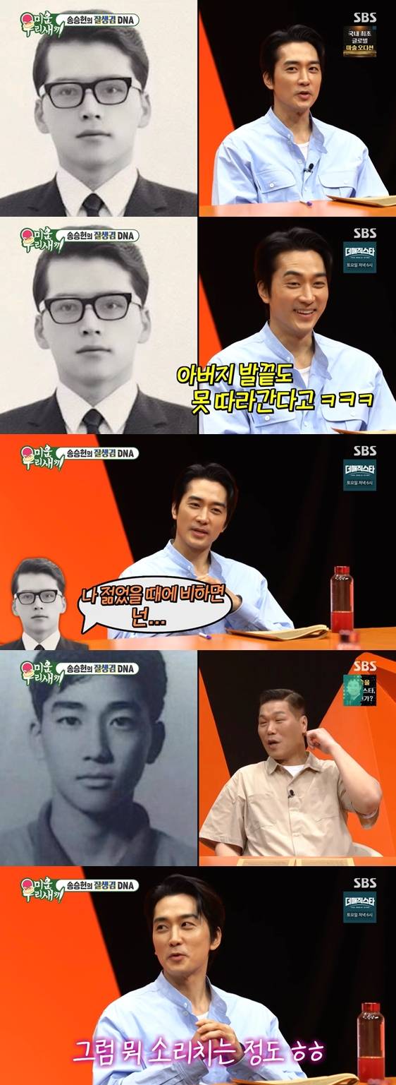 이날 서장훈은 송승헌에게 "예전에 아버님 과거 사진이 공개됐는데 난리가 났었다. '말이 되냐', '아버지의 발끝도 못 따라간다'라는 말이 있더라"라고 말했다.