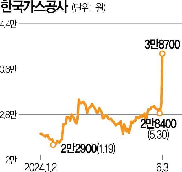 3일 한국거래소에 따르면 한국가스공사(036460)와 대성에너지(117580)·한국석유(004090)·흥구석유(024060) 등 상당수 국내 주요 가스·석유 관련주들은 이날 가격제한폭까지 뛰었다. 이 밖에도 중앙에너비스(000440)(29.51%), 극동유화(014530)(14.36%), 경동도시가스(267290)(13.62%), 삼천리(004690)(6.59%), 한국전력(015760)(4.37%), 서울가스(017390)(3.21%), 인천도시가스(034590)(3.53%), 지역난방공사(071320)(3.13%), SK이노베이션(096770)(6.30%), SK가스(018670)(6.72%), 에쓰오일(S-Oil(010950)·2.64%), E1(017940)(3.48%) 등 각종 에너지 관련주의 상승률이 코스피지수(1.74%)의 상승률을 크게 웃돌았다. 전기가스업 지수도 8.74% 올라 전체 업종 가운데 가장 큰 폭으로 상승했다. 동양철관(008970)이 상한가로 직행한 것을 비롯해 대동스틸(048470)이 27.91% 상승하는 등 강관 업체들의 주가도 초강세를 보였다. 특히 외국인투자가가 한국전력을 151억 원, SK이노베이션을 130억 원, 에쓰오일을 56억 원, 대성에너지를 28억 원 각각 순매수하며 주가를 견인했다. 외국인은 E1과 삼천리·한국석유도 14억 원씩 사들였다.