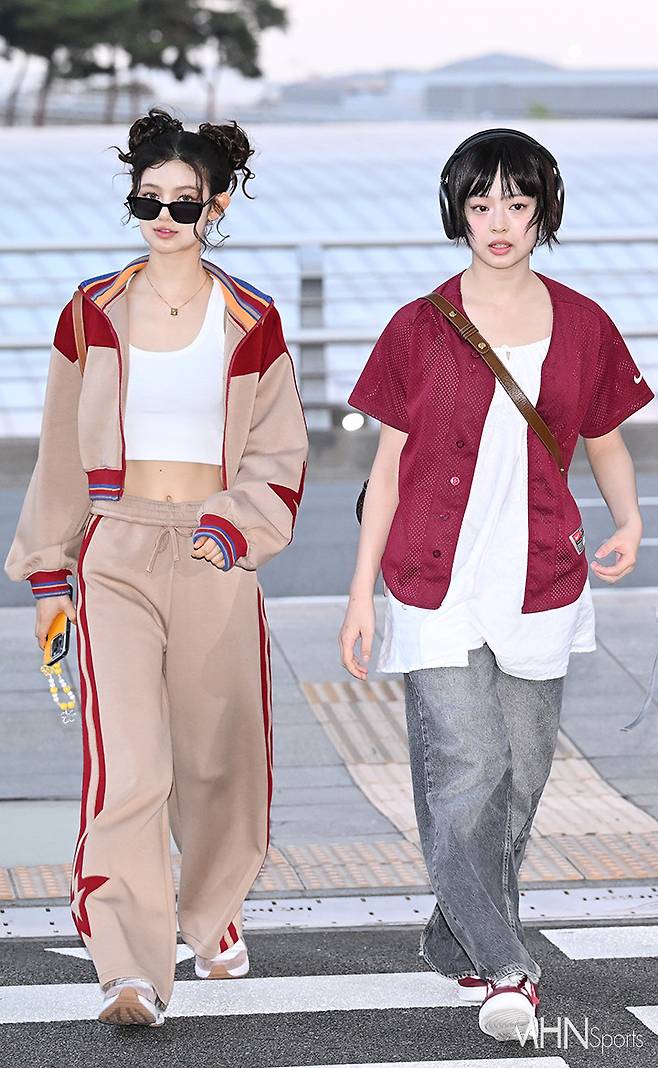 뉴진스 다니엘, 하니가 출국장으로 향하고 있다.