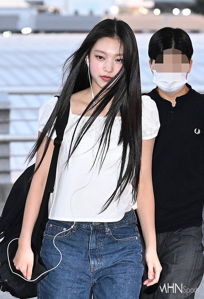 뉴진스 해린이 출국장으로 향하고 있다.