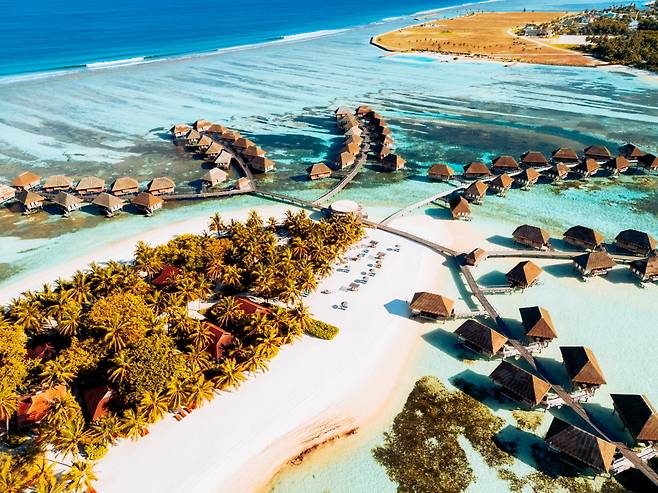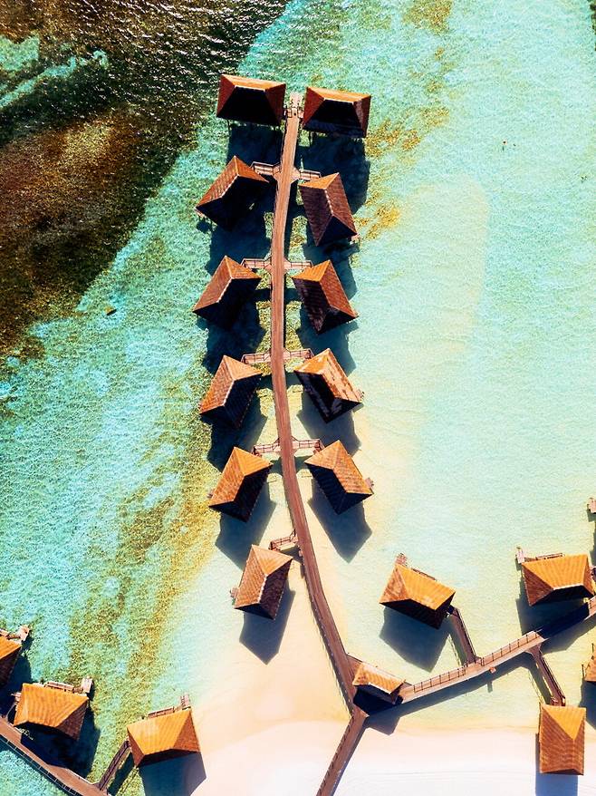 같은 시간, 공항에 우르르 쏟아진 여행객들은 당구대 위의 공들처럼 뿔뿔이 리조트로 흩어졌다. 거리에 따라 누구는 쾌속정을 타고, 누군가는 수상 비행기에 몸을 싣는다. 이 지점부터 몰디브 여행은 수십 갈래로 나뉜다. 몰디브는 1,192개의 산호섬으로 이루어진 섬나라다. 그중 리조트로 개발된 섬은 100여 개. 리조트 하나당 독립적인 섬 하나를 차지한다. 99%의 여행자는 하나의 섬(=리조트)에서 일정의 99%를 보낸다. 완벽히 휴양지향적 여행이다. 그러니 숙소 선택은 몰디브 여행의 전부일 수밖에. 이건 과장이 아닌 팩트다.