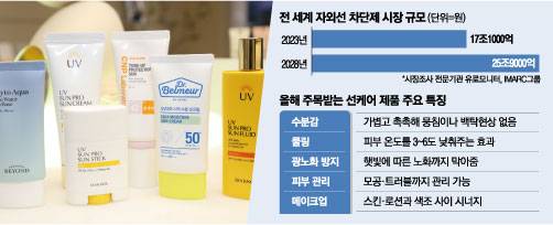 시장 조사기관 유로모니터에 따르면 지난해 전세계 자외선 차단제 시장 규모는 약 17조1000억원에 달했다. 시장조사 전문기관 IMARC그룹은 선케어 시장이 2028년까지 연평균 7%씩 성장해 25조원을 넘어설 것으로 전망했다.