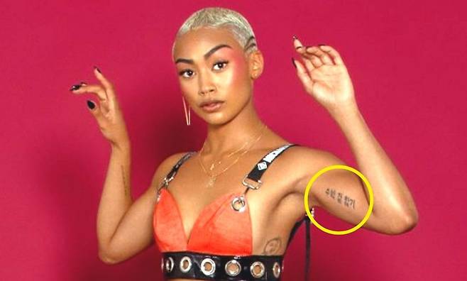 타투를 새긴 것을 후회하며 지우고 있는 배우 나나, 한소희와 반대로 독특한 타투로 자신 만의 개성을 표현하는 스타들도 있다.